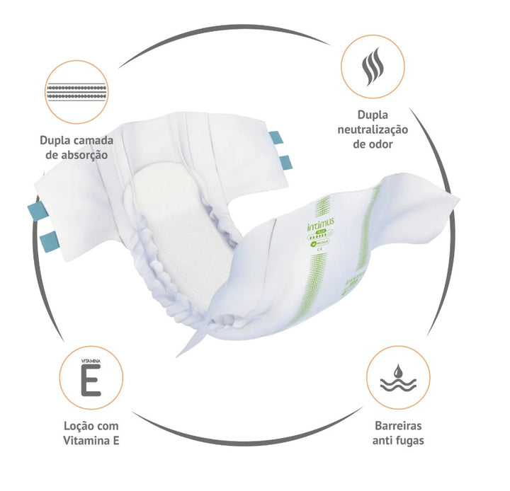 As Fraldas Intimus Premium Care Plus são uma gama de absorventes descartáveis para incontinência moderada, que protege a intimidade do seu utilizador, proporcionando-lhe um cuidado preventivo da saúde da pele.